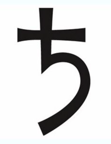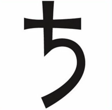 Dans son glyphe : avec le symbole de la croix qui représente le corps ainsi que le croissant de lune représentant l’âme, symbolise l’épreuve de l’incarnation. C’est le principe d’individuation.